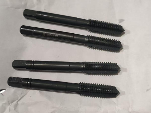 德标丝锥总体都偏长,比JIS和JIS2和ISO三种标准都要长,但是德标手用丝锥很短,而且表面几乎都是加硬发黑处理,这也显示出德标丝锥的一种更贴近实际生产场景需求的特点,因为手用丝锥更多是在丝锥绞手上使用,要么是人工手绞攻牙,要么是车床慢速攻牙,要么是手电钻攻牙,这三种情况精度要求不高,转速也不高,也几乎没有冷却,但是很容易因为受力不均,或者是偏摆导致丝锥折断。在这样的加工场景下。德标丝锥本身是用含钴高速钢,还是普通高速钢区别不大,只是在表面加硬以后更适合这种攻牙场景,并且因为柄部夹持只夹持方头,不像刀柄那样至少要含住15Mm以上的柄,所以总长可以做短。可以看出,德标丝锥整体在设计之初就非常合理。